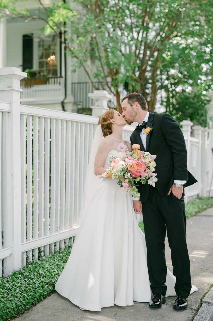 The Legare Waring House is incredible. That Avenue of Oaks will stop you in your tracks the first time you see it! Ancient oak trees create this incredible natural cathedral, with Spanish moss that seems to dance whenever there’s even the slightest breeze. It is pure magic. I have captured many weddings here right at golden hour. The light filtering through those trees during the ceremony is dreamy. It creates this dreamlike glow around the couple that no filter could ever replicate. The historic house makes for an amazing portrait backdrop too. And the grounds are filled with blooming camellia bushes! There are endless spots for romantic photos without even trying.