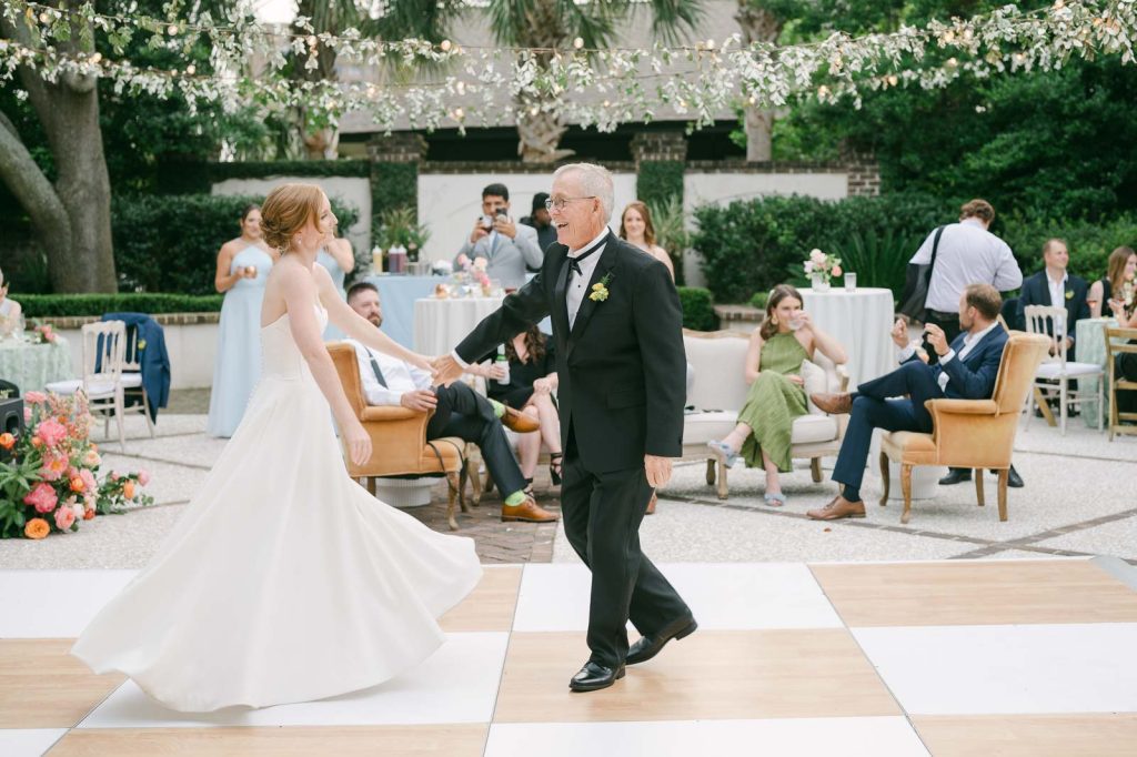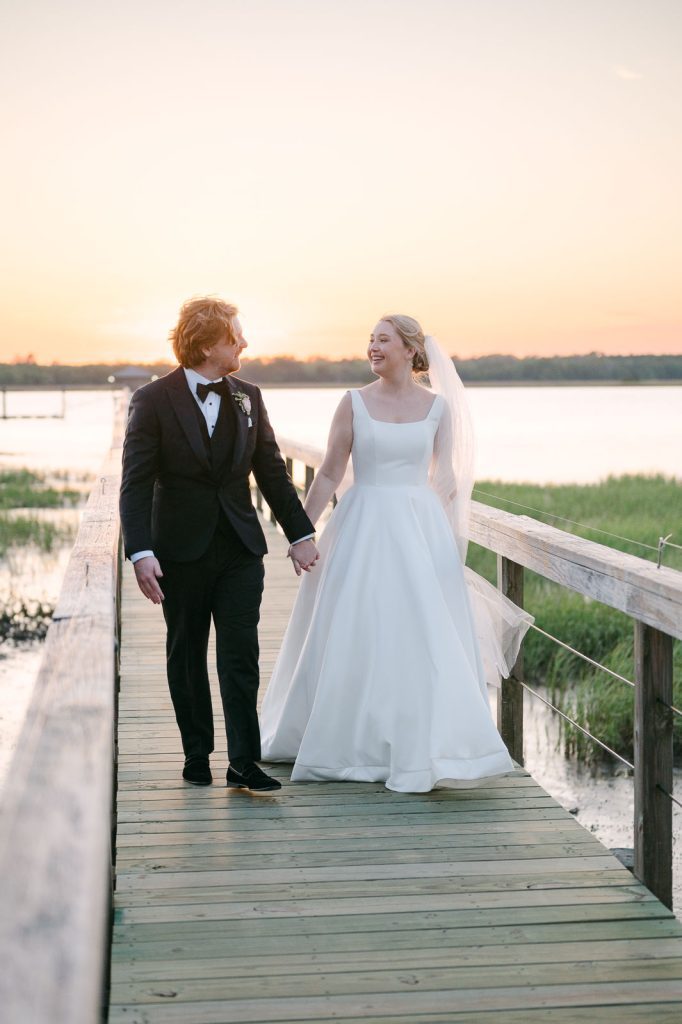 I have shot many sunset ceremonies on the riverfront lawn that I still can’t get over. The golden light bouncing off the water created this warm glow that seemed to wrap everyone in amber. Magical doesn’t even begin to describe it. The private dock stretching over the river gives us unique portrait opportunities you just can’t get anywhere else in Charleston. Whether you’re planning something intimate or going all out, Lowndes Grove has spaces that transform to match whatever you’re dreaming up.