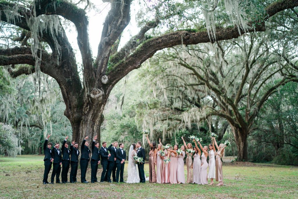 The Legare Waring House is incredible. That Avenue of Oaks will stop you in your tracks the first time you see it! Ancient oak trees create this incredible natural cathedral, with Spanish moss that seems to dance whenever there’s even the slightest breeze. It is pure magic. I have captured many weddings here right at golden hour. The light filtering through those trees during the ceremony is dreamy. It creates this dreamlike glow around the couple that no filter could ever replicate. The historic house makes for an amazing portrait backdrop too. And the grounds are filled with blooming camellia bushes! There are endless spots for romantic photos without even trying.